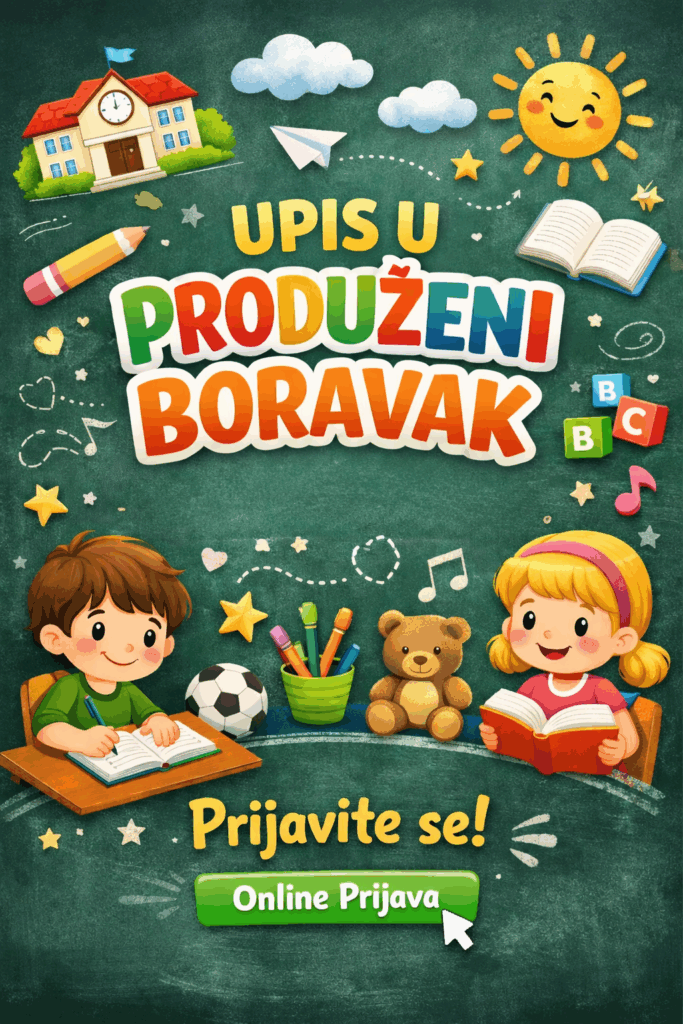 Obavještavamo roditelje da je u toku prijava učenika za produženi boravak za školsku 2026/2027. godinu.Zainteresovani roditelji mogu izvršiti prijavu putem